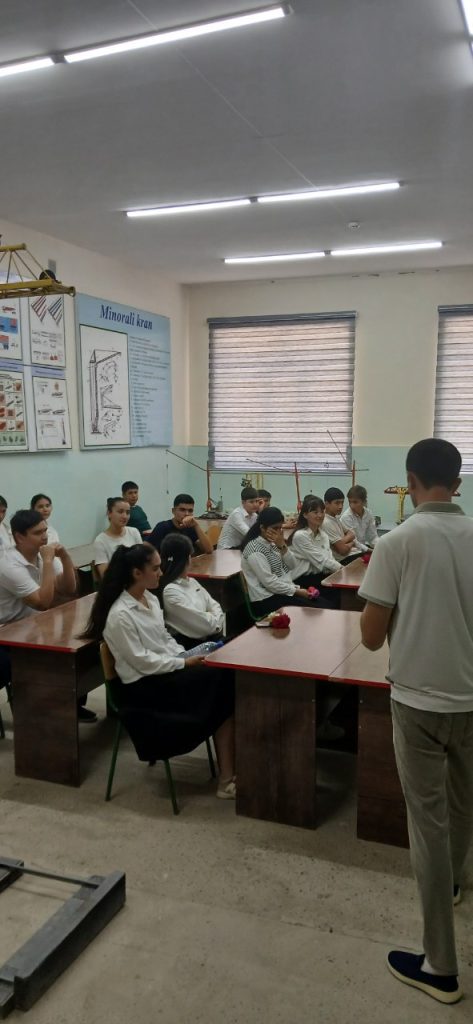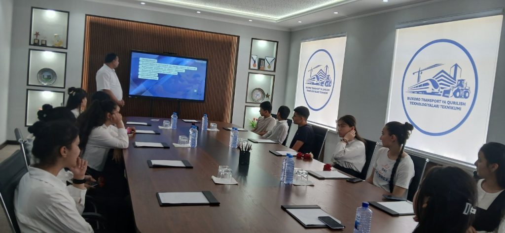 Buxoro transport va qurilish texnologiyalari texnikumida 2025-2026 o`quv yili uchun qabul jarayonlarini tashkil etish uchun umumta`lim maktablaring 9 sinf bitiruvchilari uchun “Ochiq eshiklar” kuni tadbiri tashkil qilindi.