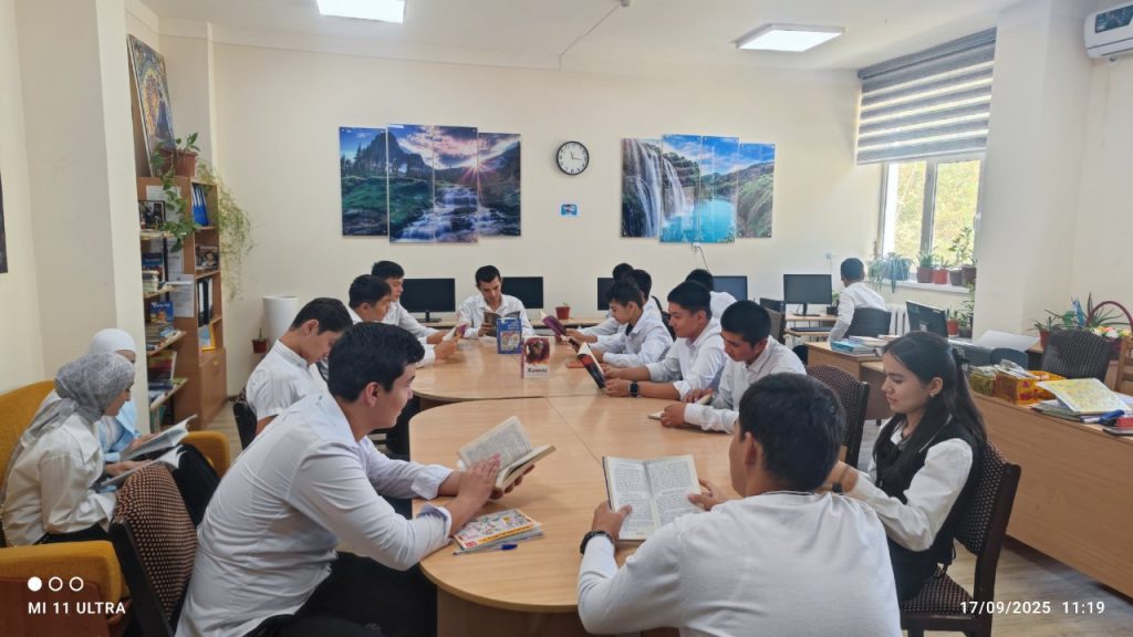 Buxoro transport va qurilish texnologiyalari texnikumida 17-sentyabr kuni 25-6 – guruh talabalari oʻrtasida kitobxonlik madaniyatini yuksaltirish, ularning badiiy asarlarga va she’riyat olamiga bo‘lgan qiziqishini oshirish hamda kitob mutolaasini keng targ‘ib qilish maqsadida davra suhbati tashkil etildi.